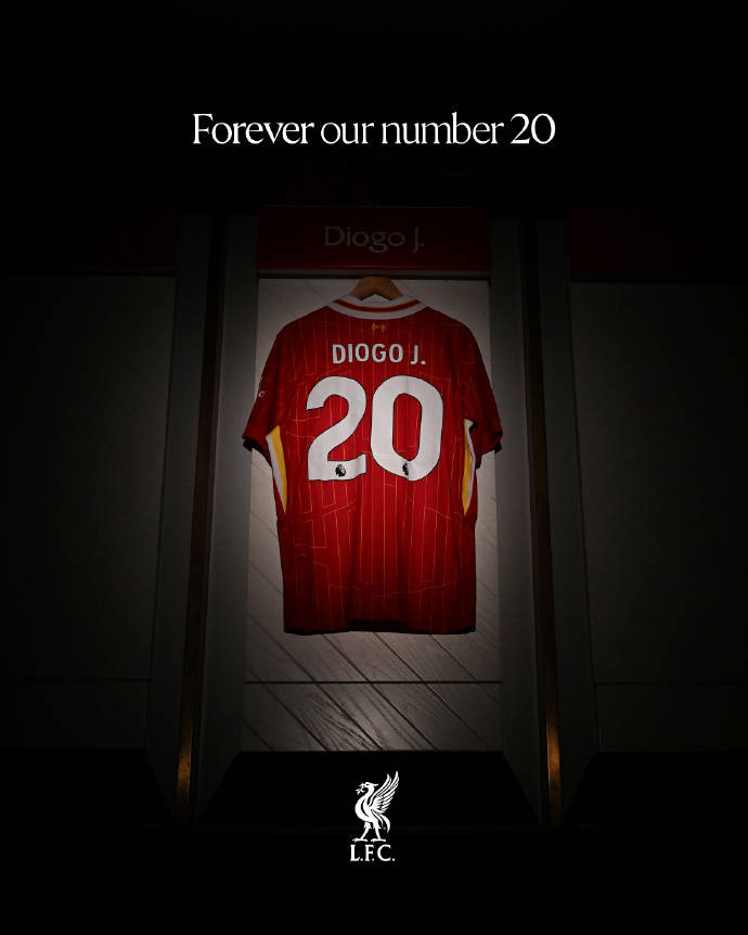 “迪奥戈于2020年加盟,他为我们赢得第20冠,而他身披20号战袍的每一刻——都承载着荣耀、卓越与深情。对利物浦足球俱乐部而言,他将永远是我们20号。"