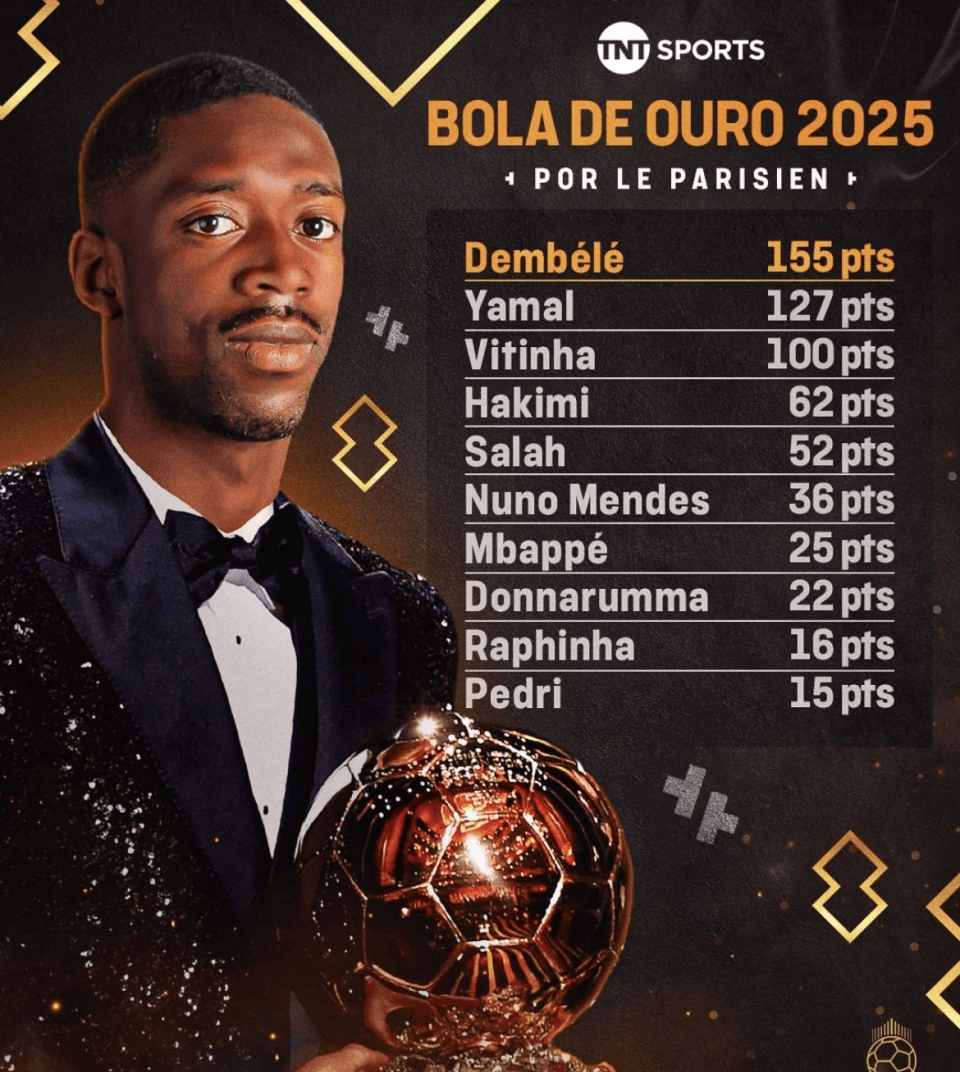 除了数据,登贝莱本赛季的团队和个人荣誉也让人印象深刻。他跟着球队拿了法甲冠军、法国杯冠军,还有巴黎圣日耳曼队史首个欧冠奖杯,在国内和欧洲赛场都很厉害。他个人拿到了法甲年度最佳球员,还多次获得月度最佳球员称号。《巴黎人报》最近的金球奖预测里,他得了155分,比第二名领先很多,说明业内专家很认可他。
